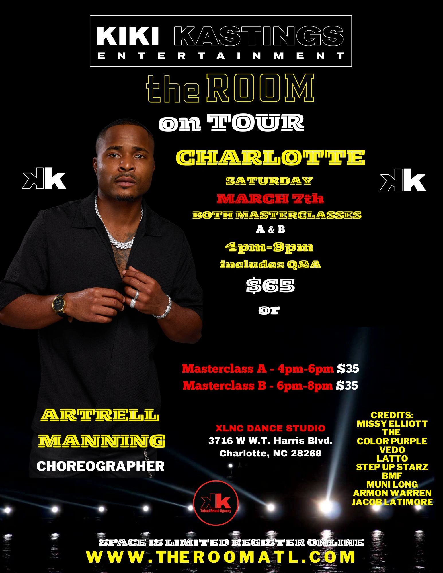 After 13 iconic editions of theROOM in Atlanta, we’re hitting the road! Charlotte, Memphis, Baton Rouge, Orlando, and Dallas—this is your chance! Dancers, if you’ve ever dreamed of performing with your Platinum Selling artists or shining in Live Shows, Tours, & Music Videos in the entertainment Industry, this is for you! Tag the artists you want to in your city. We’re spotlighting local talent and giving dancers a stage to launch their careers. Early-bird registration opens with this announcement, so tag now and get ready to dance into your future!